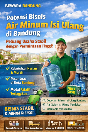 Bewarabandung.com – Kebutuhan air bersih dan air minum layak konsumsi menjadi salah satu kebutuhan utama masyarakat perkotaan. Di kota besar seperti Bandung, bisnis air minum isi ulang berkembang pesat dan terbukti menjadi usaha yang stabil, tahan krisis, serta memiliki permintaan konsisten sepanjang tahun.